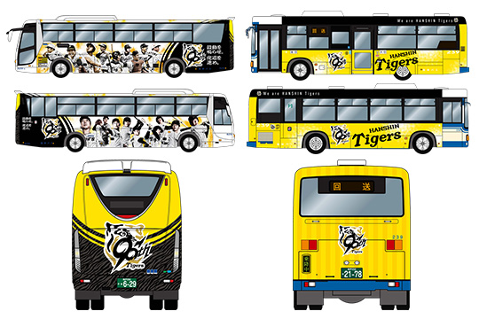 阪神電車の特別ラッピング車両を3月5日(水)からシーズンを通して運行いたします。さらに、阪神バスでも90周年を記念した特別デザインの空港リムジンバスを3月5日(水)から、一般路線バスを3月7日(金)から、それぞれ運行いたします。