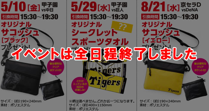• 引換場所は場内にはございません。阪神甲子園球場では再入場は出来ませんので必ずお引き換えの上ご入場ください。