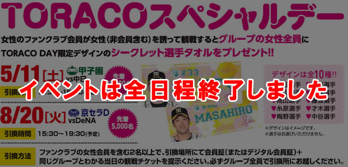 • 甲子園球場では、一度ご入場されますと、再入場できませんので予めご了承ください。