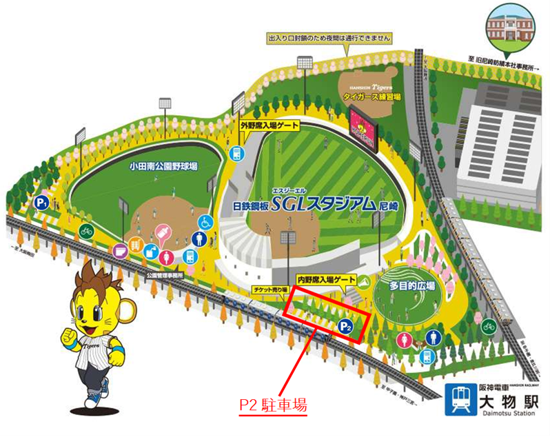 - ※P2駐車場のご利用は、試合当日の車椅子席チケットをお持ちの方に限ります。