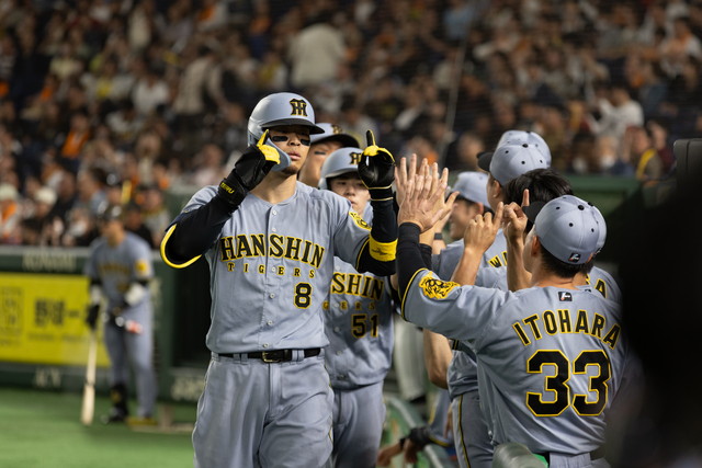 7日の同戦では開幕から防御率0.00の山﨑が投じた151キロ直球を見事に捉え、虎党が待つ左翼席に突き刺した。新人から3年目以内で2度の4戦連発は球団史上初で、巨人との同一カード3連戦3連発は03年のアリアス以来、22年ぶり。「自分の間合いで打てているだけ」と絶好調の要因を明かした3番打者は、表情を緩めることなく「結果は準備をすれば伴ってくるもの。特に意識していない」と胸を張った。