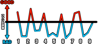 1試合を通じてどのシーンが盛り上がったかを視覚的に伝えます。