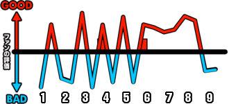 1試合を通じてどのシーンが盛り上がったかを視覚的に伝えます。