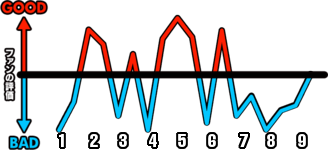1試合を通じてどのシーンが盛り上がったかを視覚的に伝えます。