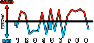 1試合を通じてどのシーンが盛り上がったかを視覚的に伝えます。