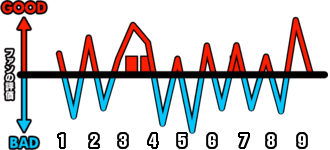 1試合を通じてどのシーンが盛り上がったかを視覚的に伝えます。