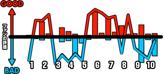 1試合を通じてどのシーンが盛り上がったかを視覚的に伝えます。