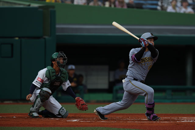 タイガースは先発の門別投手が5回、奪三振9で無失点の好投。打線は初回から嶋村選手の先制タイムリーなど3得点。6回にも町田選手、川﨑選手のタイムリーなどで得点を重ねます。7回裏に登板した富山GRNサンダーバーズ出身の松原投手は古巣を相手に三者連続三振に打ち取るなど、この試合は投打に独立リーグ出身選手が活躍して11対0の大勝となりました。