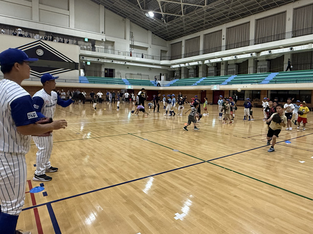 「捕球練習」エリアでは秋山BA、岡﨑監督が、「投げる」「捕る」楽しさを伝え、技術指導を行いました。