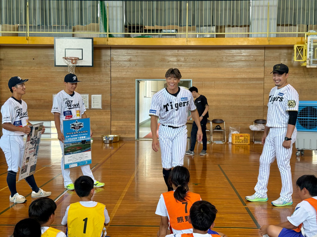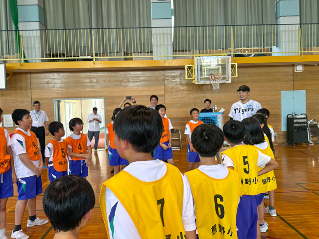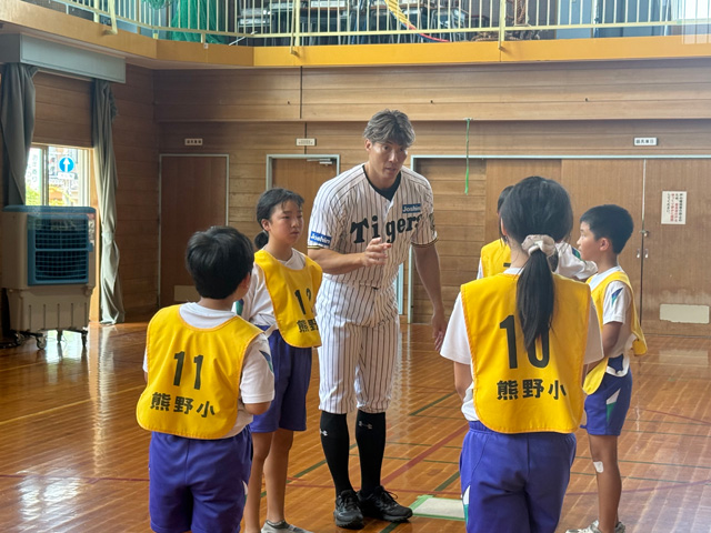 23日(水)、糸井嘉男スペシャルアンバサダー、秋山拓巳ベースボールアンバサダーが、地元・富山の独立リーグ球団・富山GRNサンダーバーズの選手と共にゲストティーチャーとして「富山市立熊野小学校」を訪問しました。
