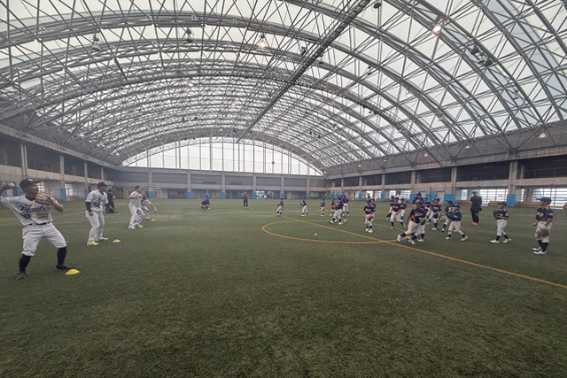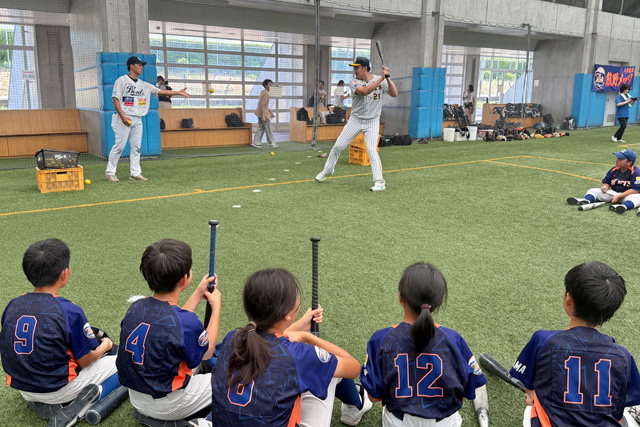 「打撃練習」エリアでは、「強い打球で遠くへ飛ばす」をテーマに、デモンストレーションを交えながら、丁寧な技術指導を行いました。