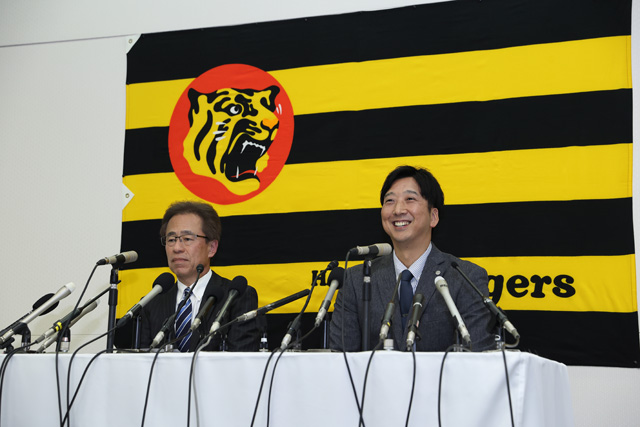 先ほど秦オーナーに2025年のシーズンの終了報告を行いました。藤川監督からセ・リーグ優勝、そして日本シリーズ進出を果たしたことの報告をいたしまして、オーナーからは1年間全力で戦い抜いたチームへの労い、それから感謝の言葉もいただきました。