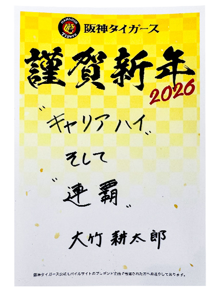 公式モバイルサイトでは、2025年末に選手が直筆で新年の抱負をしたためた年賀状プレゼント企画を実施しました。当選された方に実際に送られた、14選手の直筆年賀状をご紹介いたします!