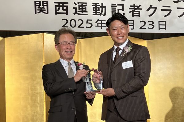 この度、関西運動記者クラブ選定「第69回 関西スポーツ賞」の団体賞を阪神タイガースが受賞し、23日(火)、大阪市内で行われた表彰式に粟井一夫球団社長が出席しました。また、今シーズン限りで引退した原口文仁氏は功労賞を受賞されました。