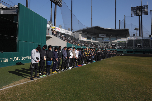 阪神・淡路大震災発生から31年となる17日(土)、SGLスタジアムでの練習前に選手、球団スタッフらが黙祷を捧げました。
