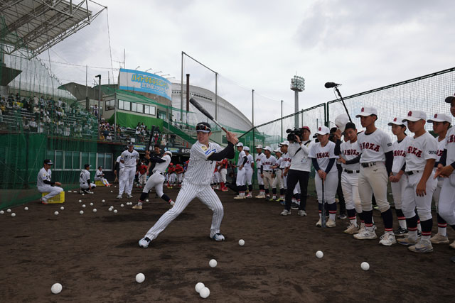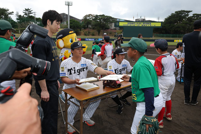 15日(日)、春季キャンプを実施している宜野座・具志川各球場にて、練習後、地元の少年少女野球チームを対象に野球教室を開催いたしました。