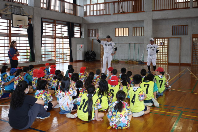 阪神タイガースではベースボールスクール以外に、アンバサダーやOB、タイガースアカデミーコーチを派遣し、小学校の先生に代わって授業を行い、野球に触れ合う機会をもってもらう活動をしております。