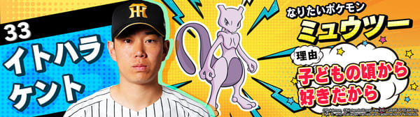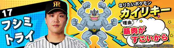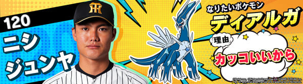 4月17日(金)~19日(日)、阪神甲子園球場での対中日ドラゴンズ戦において「ポケモンベースボールフェスタ2026 ~30年の想いをボールに込めて~」を開催。イベントに合わせて、タイガース全選手になりたいポケモンを聞いてみました!是非、推し選手のなりたいポケモンを探してみてください!!なお、イベント開催期間中は球場ビジョンでも紹介いたします。
