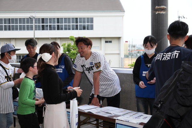徳島では初めての参戦となった秋山拓巳ベースボールアンバサダーがグッズ売り場の一日店長に就任!地元徳島や全国のタイガースファンの皆さまと交流しました。