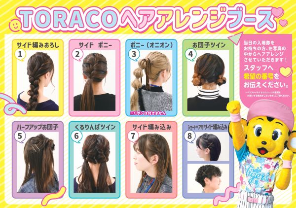 その他、TORACOメモリアルウォールや、TORACO仕様に彩られたステージで披露される、TigersGirlsによるスペシャルパフォーマンス、来場者が誰でも手軽に楽しめるTORACO占いなど、試合までの時間を思う存分楽しめる企画を多数ご用意しました。