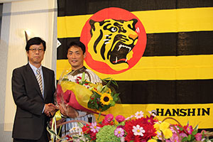 阪神タイガース一筋に22年。本当に長い間、チームの中軸としても、控えの立場でも常に弛まぬプレースタイルでファンを魅了した貴重な選手だった。2003年は4番バッターをつとめ、選手会長としてもチームをまとめてリーグ優勝に貢献した。