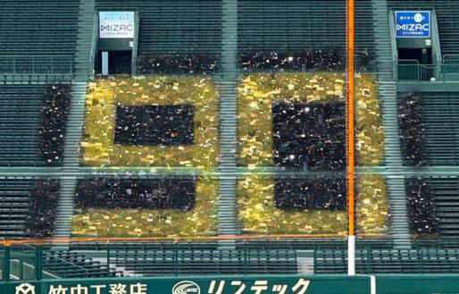 チケット購入者には、試合中のイニング間に人文字をスタンド内で演出するためのグッズを2点プレゼントします。輝かしい歴史を刻んだタイガース歴代OB選手と現役選手がデザインされた、ここでしか手に入らないグッズ(非売品)となります。