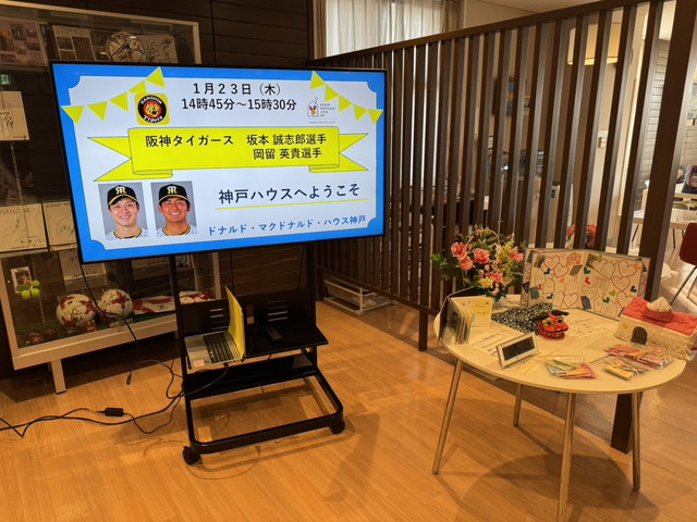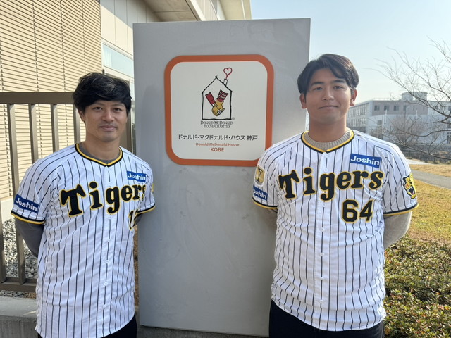 23日(木)、一般社団法人日本プロ野球選手会が行う「ドナルド・マクドナルド・ハウス」支援事業の一環として、坂本誠志郎選手と岡留英貴選手が「神戸ハウス」を訪問しました。