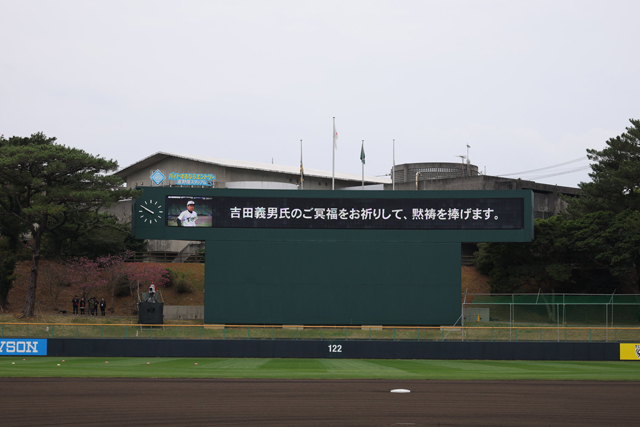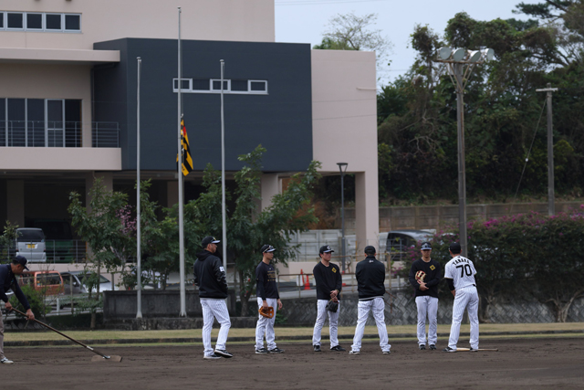 6日(木)、2月3日(月)に逝去された球団OB 𠮷田義男氏に哀悼の意を表し、春季キャンプを実施している宜野座キャンプ、具志川キャンプ各球場の球団旗を半旗にし、練習前に黙祷を行いました。