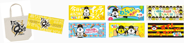 また、当日はABCテレビ「おはよう朝日です」とコラボした限定フェイスタオル(タイガースOB今成亮太氏がデザイン監修!)を数量限定で先行販売いたします。デザイン全6種をまとめて購入できるのはこの日だけ!