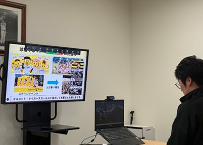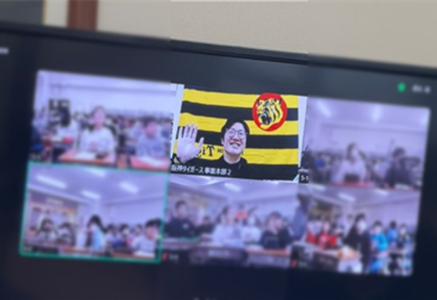 オンライン授業では、プロ野球チームに携わる仕事内容や働く職員の想いを伝えました。
