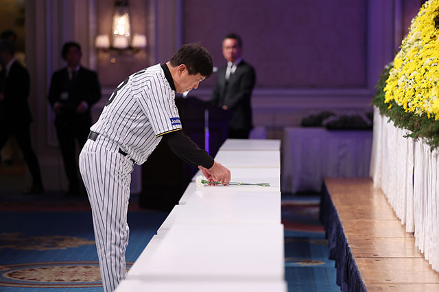 2月3日(月)に逝去された当球団OB 𠮷田義男氏のお別れの会を25日(火)、大阪市内にて執り行い、生前交流のあった方々など関係者およそ550名がご参列いただき、故人との別れを惜しみました。選手として、監督として、そして退団後も長きに渡り球団の発展へ貢献いただいたことに対し、あらためて感謝の意を表するとともに、これまでのご功績に敬意を表し、改めて心よりご冥福をお祈りいたします。