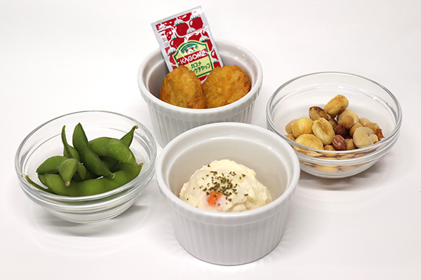 ![]() 枝豆、ナゲット、ポテトサラダ、ミックスナッツ |